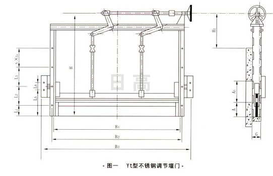 本堰门一般安装在沉淀池,曝气池等处,用于调节水位和流量。由水平设置的螺杆通过手轮的旋转,利用双曲柄原理使堰门开启或关闭,孔口宽度为2m-4m,适用于要求调节范围大的场合。
